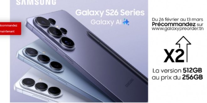 الإطلاق الرسمي لسلسلة Galaxy S26 في تونس احصل على Galaxy S26 بسعة مضاعفة خلال فترة الطلب المسبق
