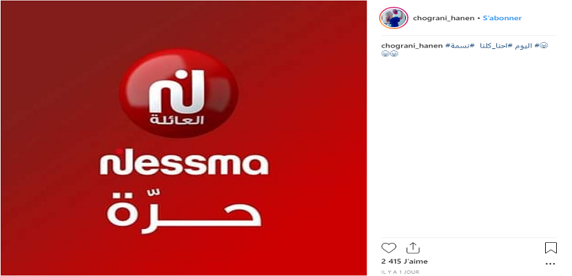 وفي هذا الأطار، تدعم الممثلة حنان الشقراني قناة نسمة عبر حسابها الخاص على موقع أنستغرام حيث نشرت صورة أرفقتها بـتعليق “اليوم أحنا كلنا نسمة”.